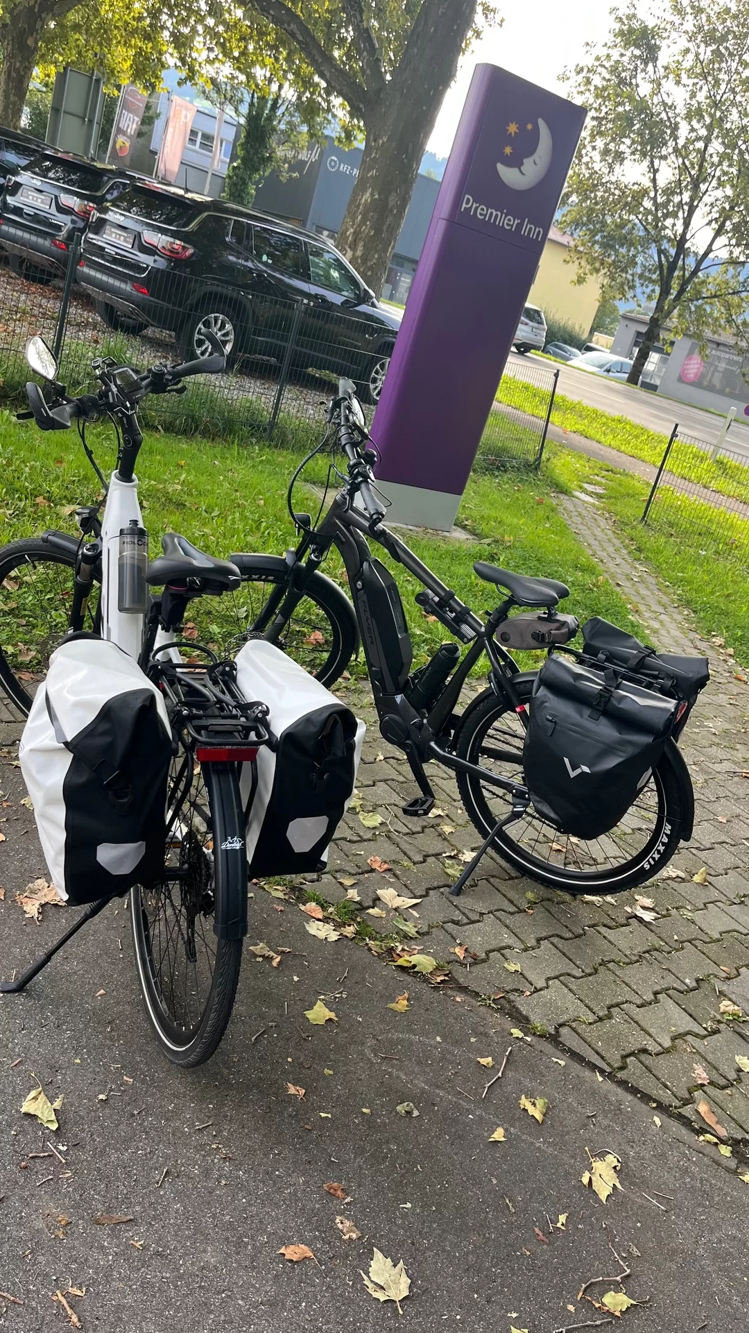 Lindau (Deutschland) mit den gepackten Fahrrädern auf die